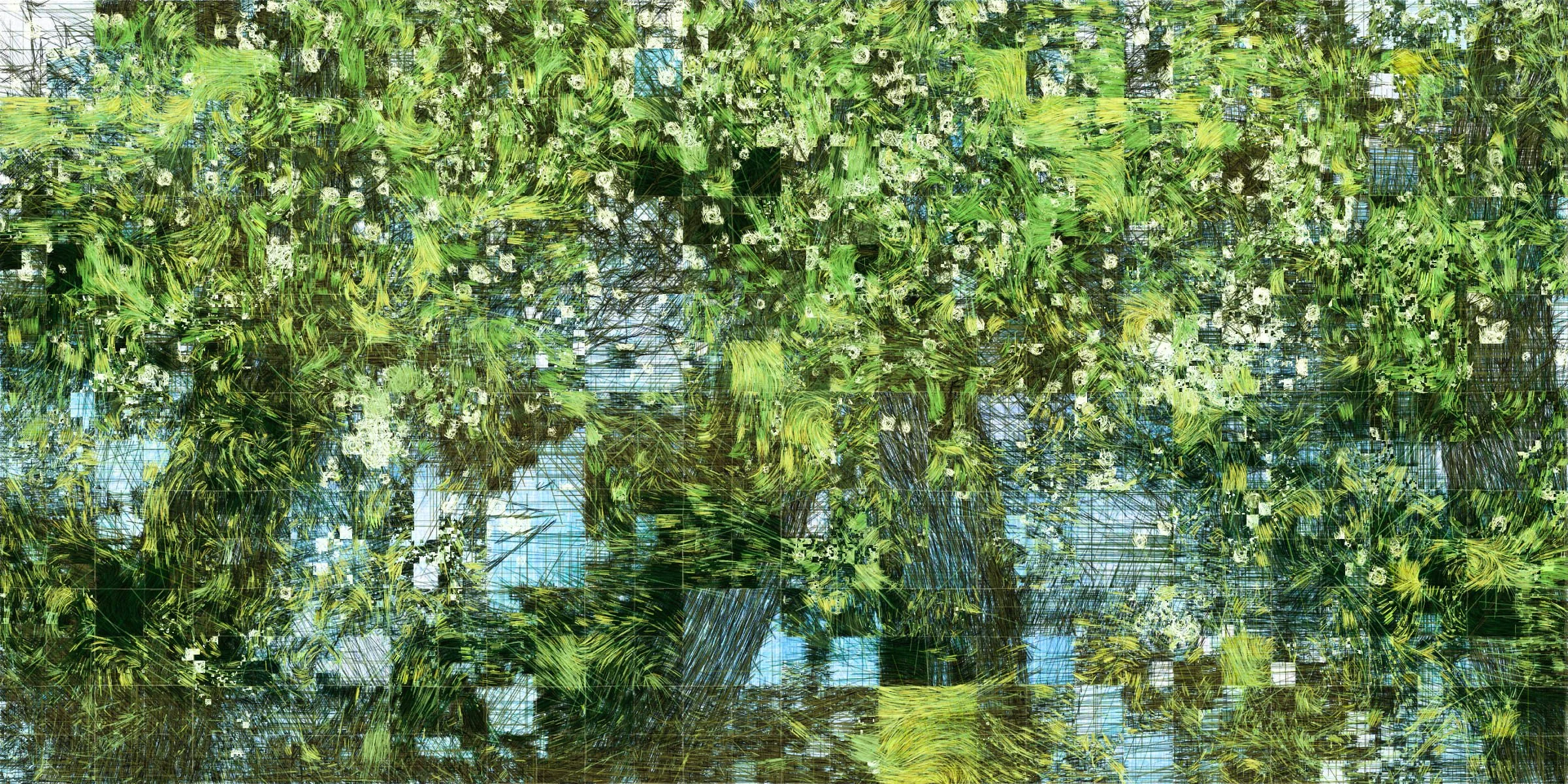We talked first about his journey: starting in Paris, discovering the Disruptive Gallery through Matt DesLauriers, and finally wanting to bring his generative work into a physical setting. Florian explained that while code is central to his creative process, he never wanted to be stuck behind a screen. His desire to merge the digital with the tangible led to Moments, a series that he first generated digitally and then painstakingly enriched by hand with dry and oil pastels. It’s a hybrid practice that blends algorithmic rigor with the subtle imperfections of human touch, creating landscapes that feel both meticulously structured and effortlessly alive.