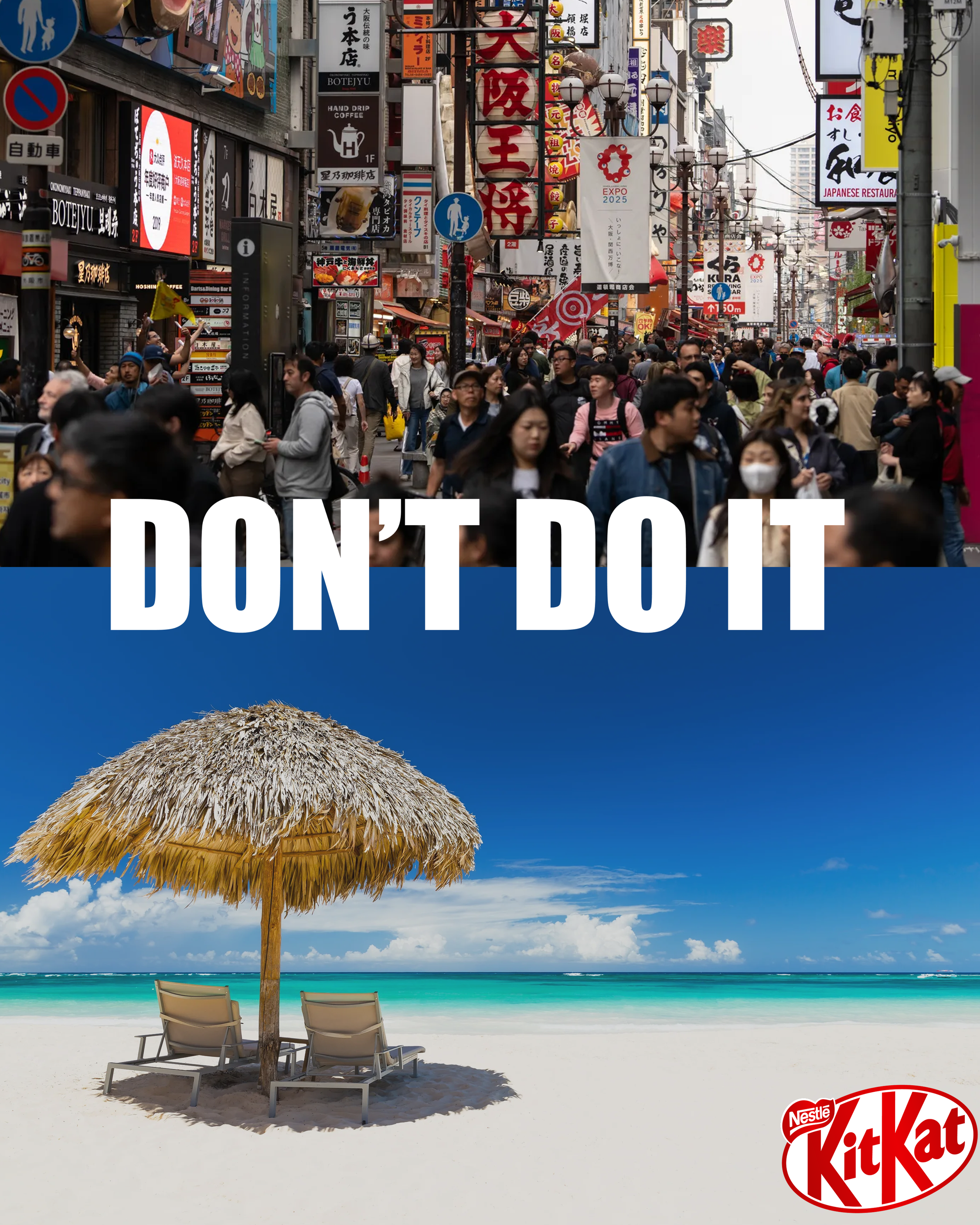 A cultural hijack that turns Nike's most recognisable line against itself. In a world that over-indexes on productivity, KitKat claims the opposite territory, and means it.